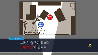 "왼쪽을 향해, 피해자가 도망갔어. 자넨 그녀를 계속 쫓아갔지"