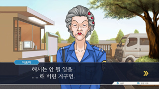 아줌마에게 5년 전 사고에 대해 물어봅니다